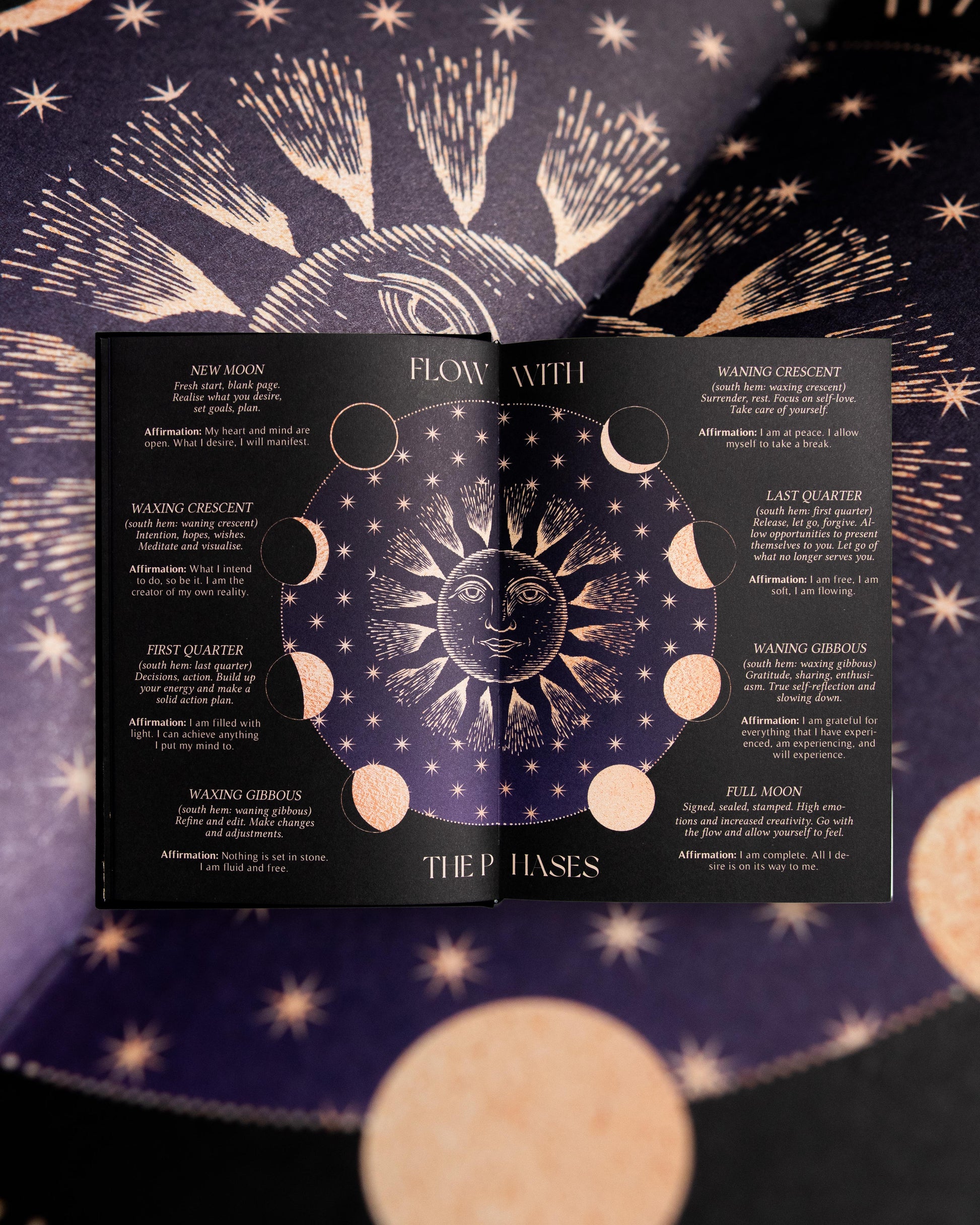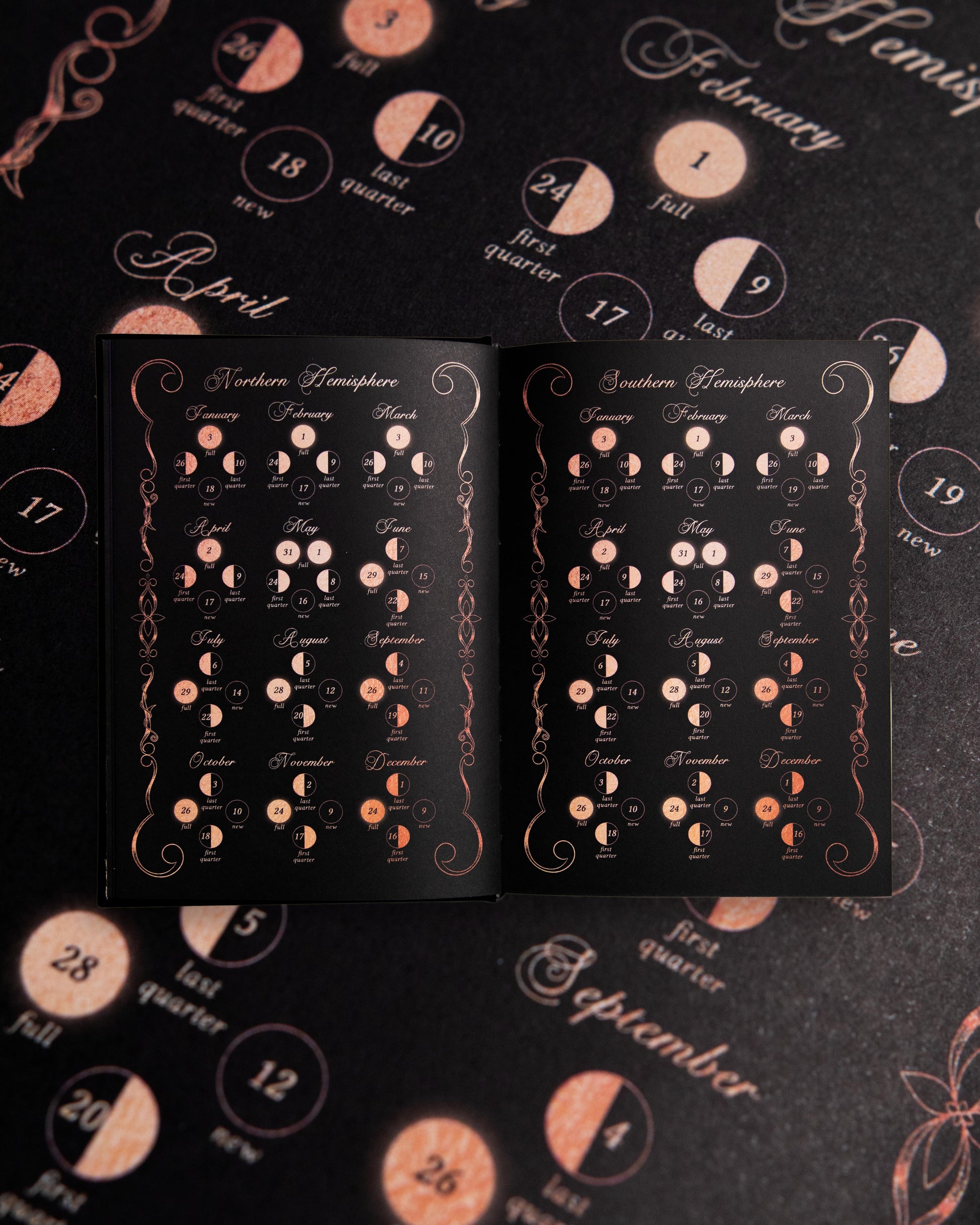Incluye las fases lunares en UTC, EST y AEST, para que podás conectar tu práctica sin importar en qué parte del mundo te encuentres.