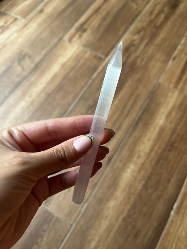 - Limpieza de cristales: La selenita es famosa por su capacidad para limpiar y recargar otros cristales. Simplemente colócalos cerca de una pieza de selenita para restaurar su energía.